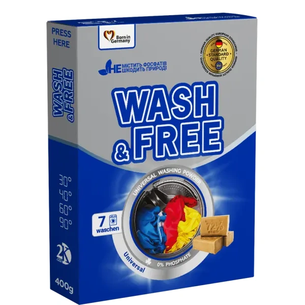 Wash & Free je vhodný pro automatické i ruční praní bílých i barevných věcí.
